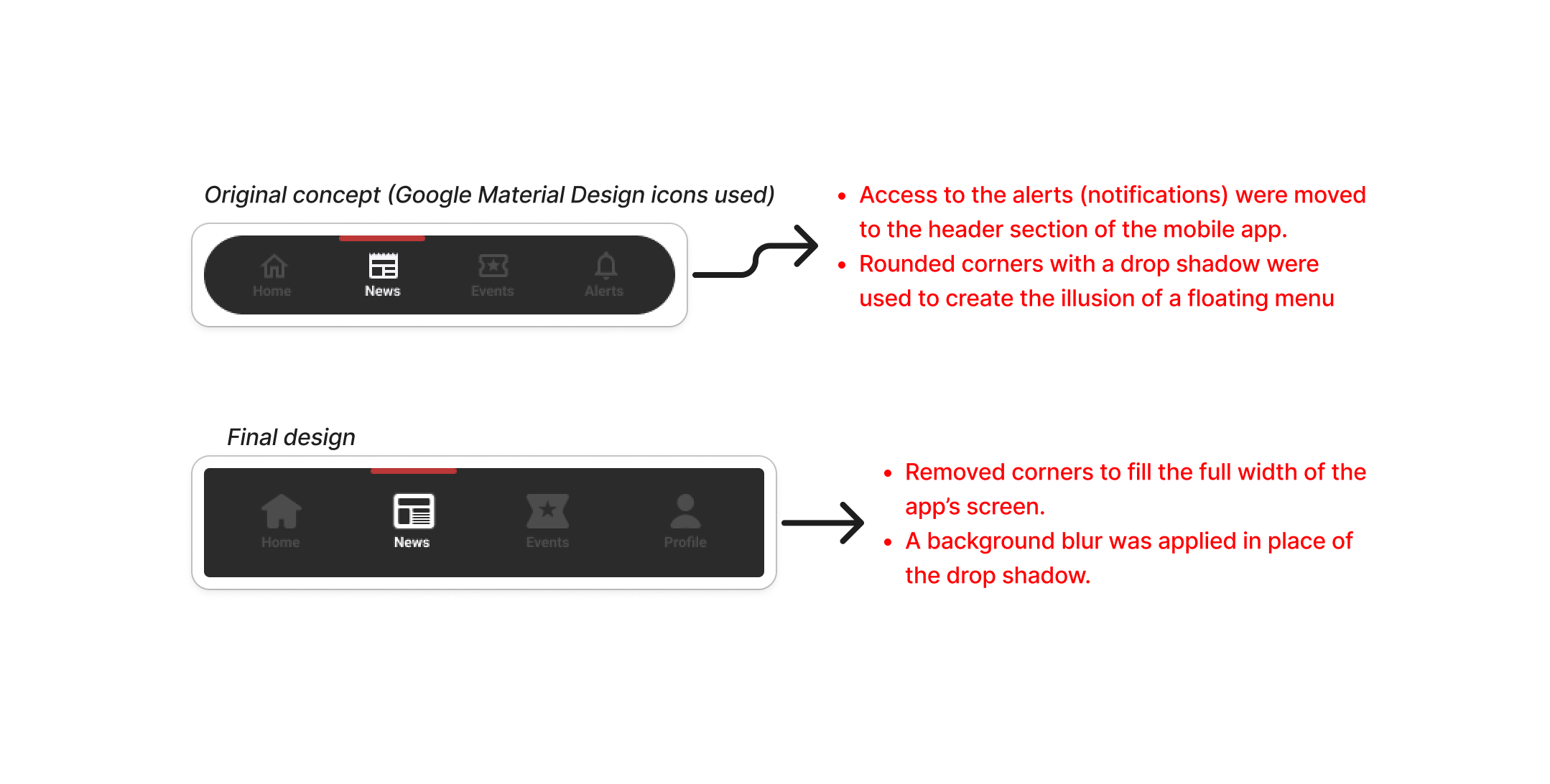 ATL Scoop UI Design KitThe design's color scheme focused on choosing a readable shade of red alongside black, representing Atlanta and commonly seen in many of the city's sports teams.